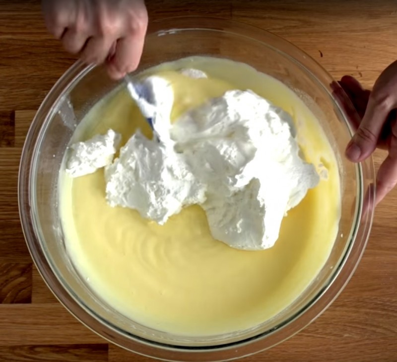Dann die Hälfte der Vanillecreme darauf verteilen.