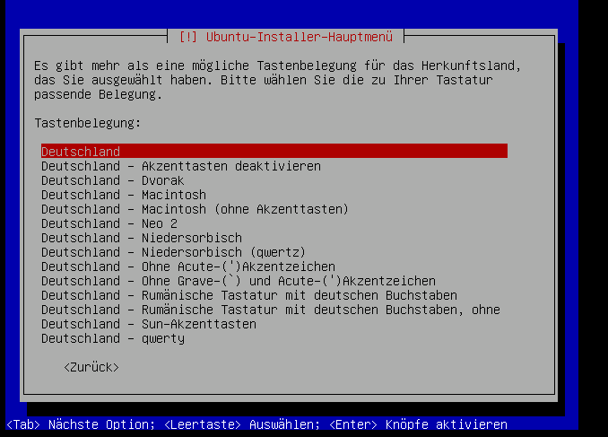Jetzt wählen wir das Tastaturmodell aus, also einfach wieder [Enter] drücken: