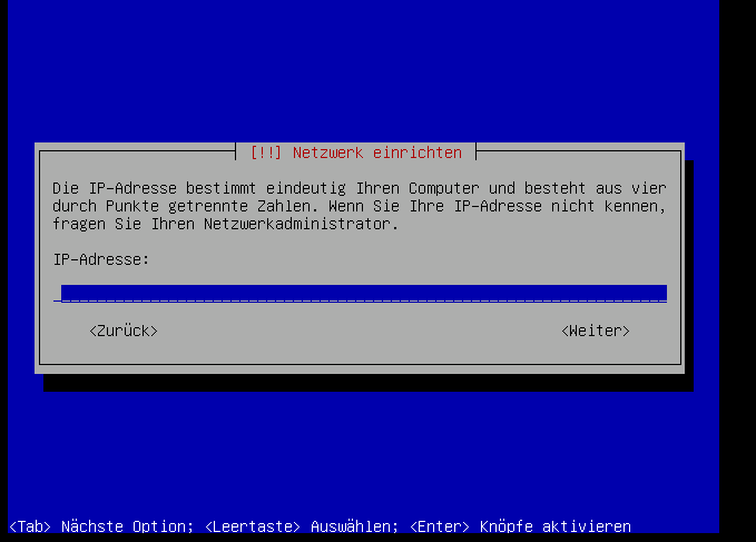 Als erstes geben wir die IP-Adresse an, die diese Maschine in Zukunft haben soll: