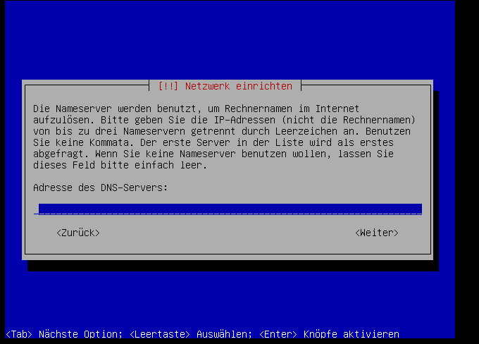 Hier wir die Adresse für den Nameserver (DNS) eingegeben: