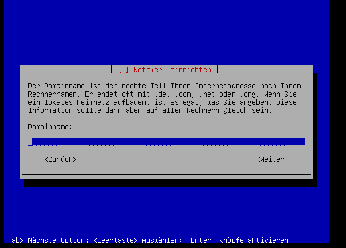 Jetzt kommt der Domainname (z.B.: "domain.de"), der oben nicht mit dem Hostnamen zusammen eingegeben wurde: