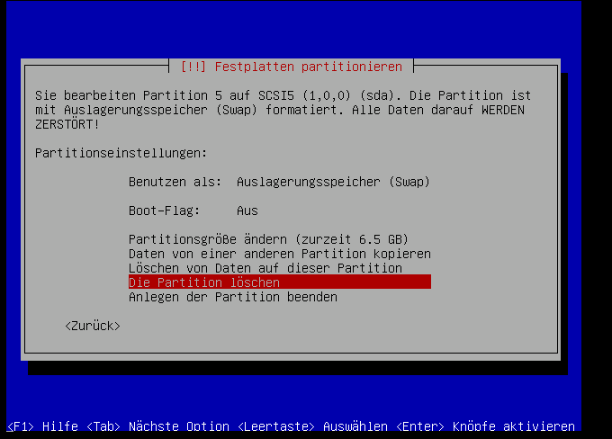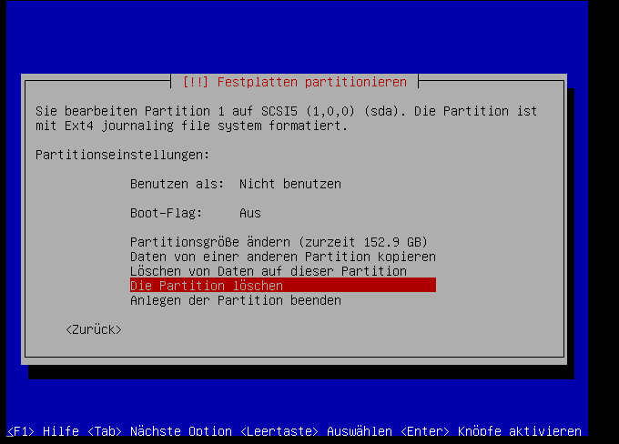 Als erstes löschen wir die logischen laufwerke: