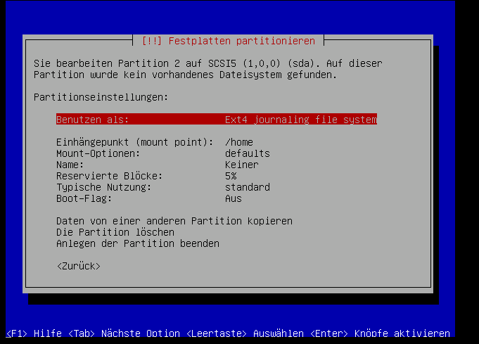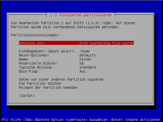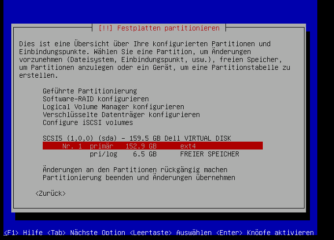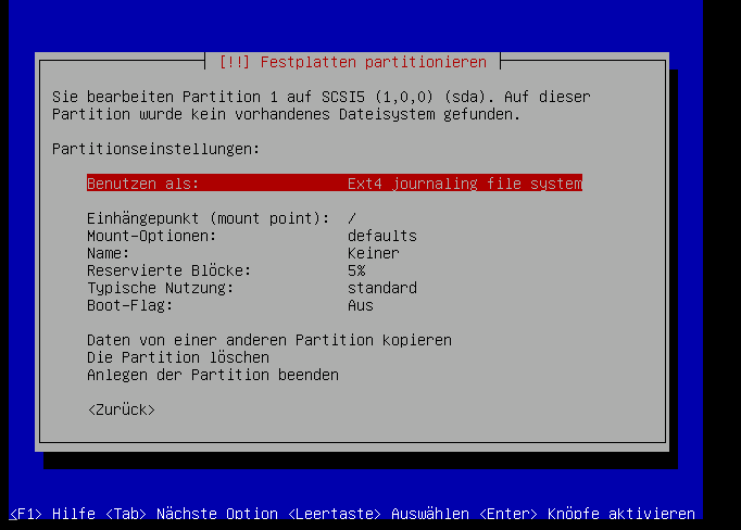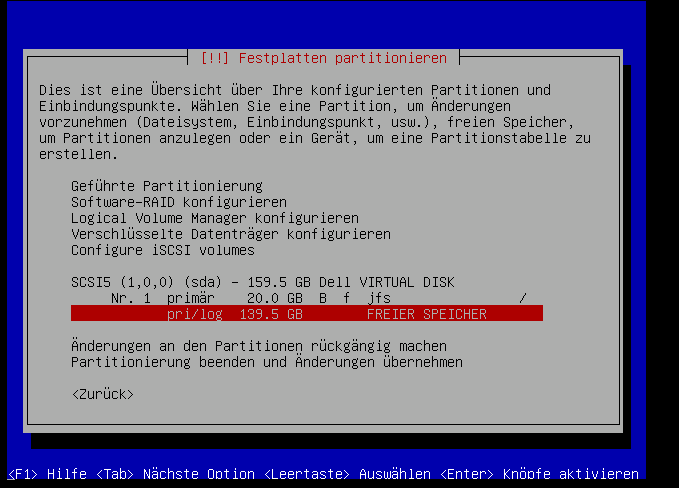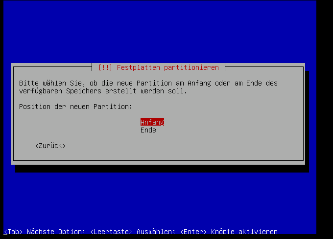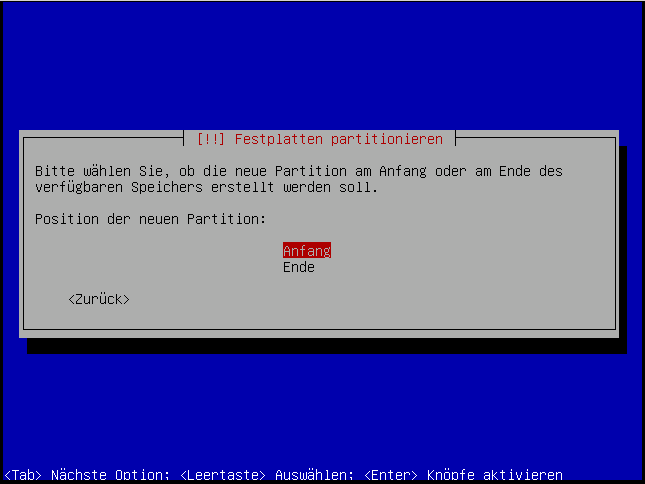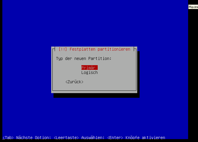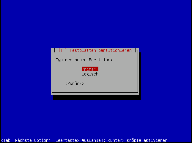 Auf jedenfall machen wir hierfür eine primäre partition: