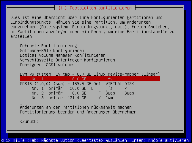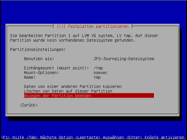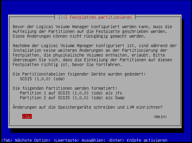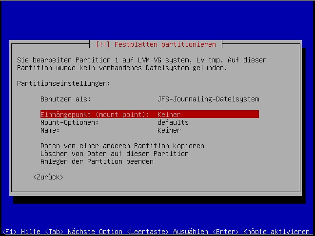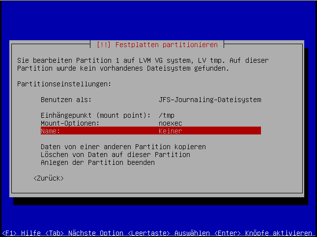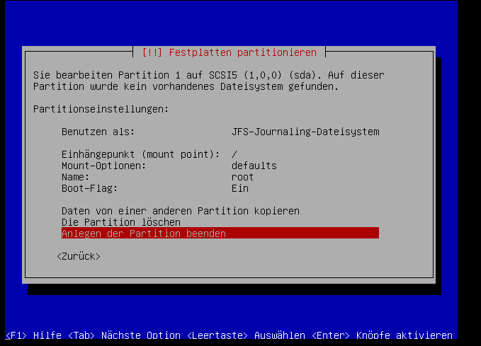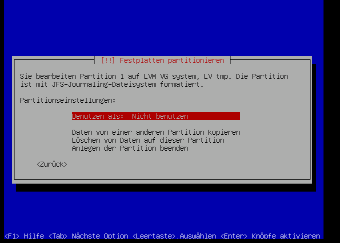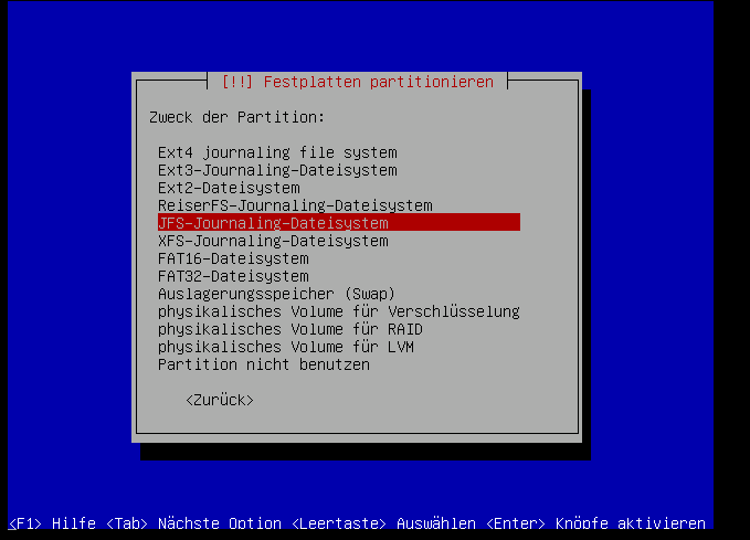 Hier verwenden wir auch das "JFS"-Dateisystem: