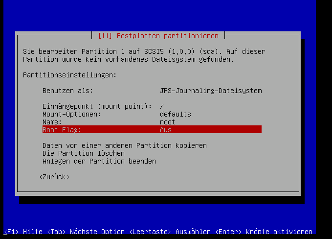 Standardmäßig ist das Bootflag ausgeschaltet, wir brauchen es aber eingeschaltet: