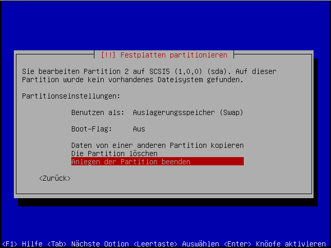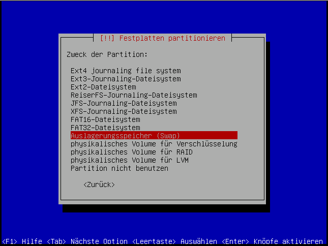 Jetzt erstellen wir noch eine kleine SWAP-Partition: