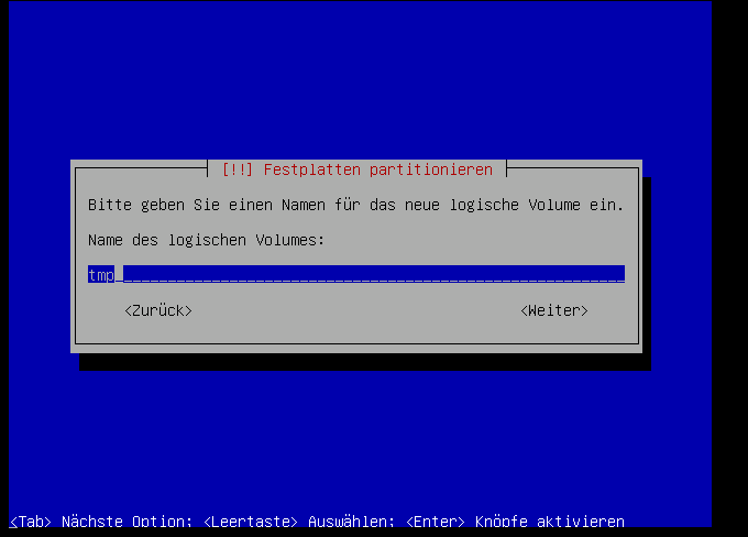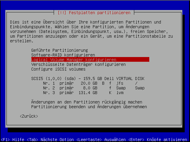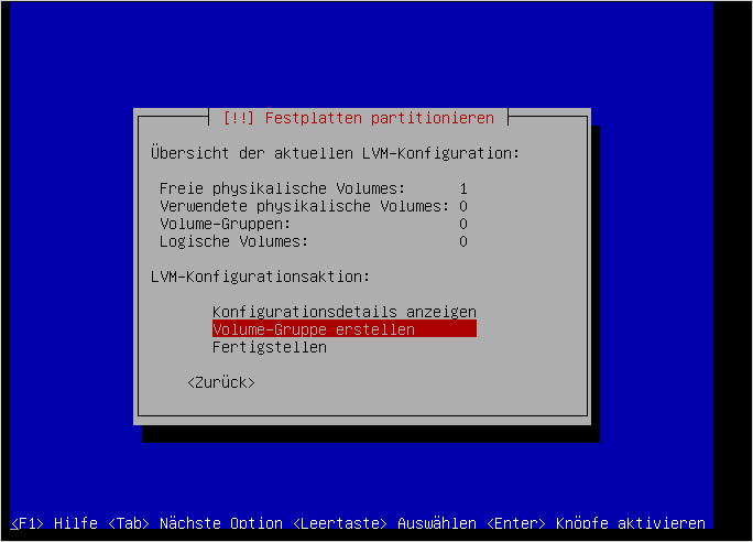 Jetzt müssen wir das LVM konfigurieren: