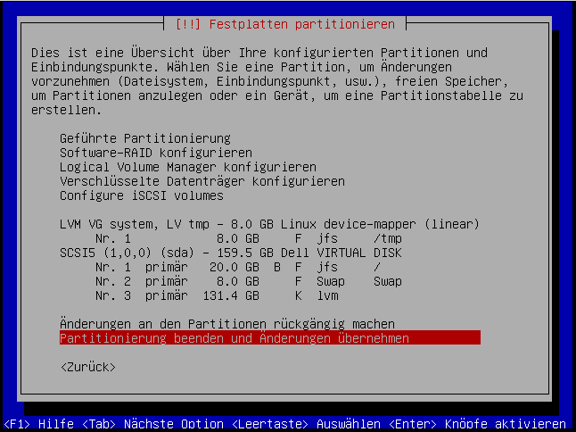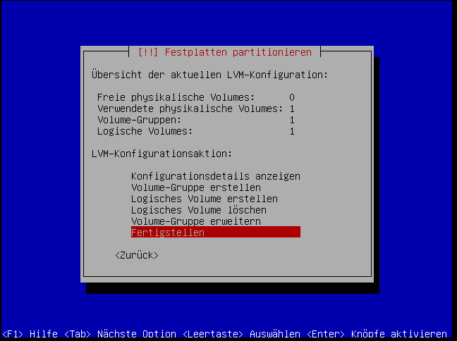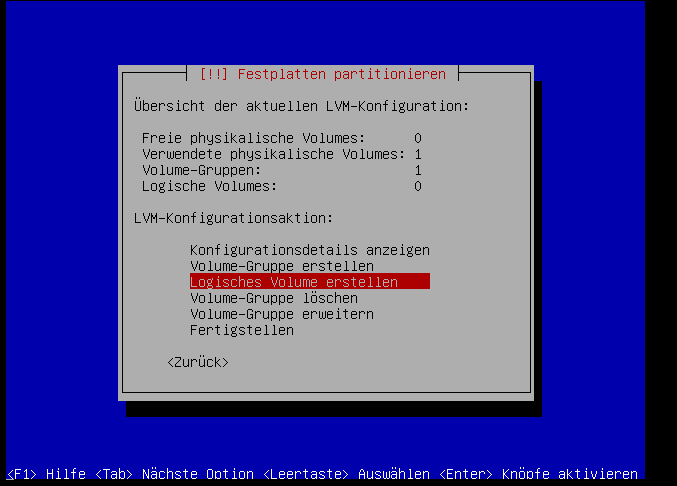 Mehr Logische Volumen brauchen wir zur Installation nicht, das wars an dieser Stelle erstmal: