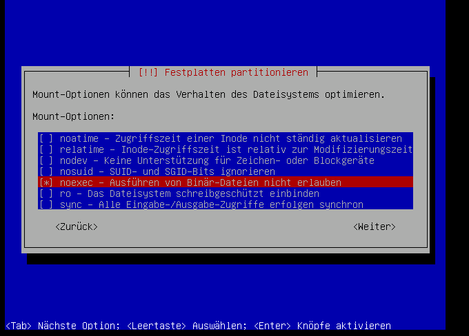 So wird das ausführen von Programmen und Scripten im "/tmp"-Bereich verhindert, das bringt ein Stück mehr Sicherheit: