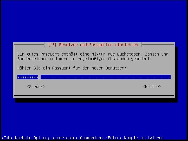 Als erstes setzen wir das "root"-Passwort, damit wir uns auch per Netz direkt einloggen können (ich weiß, es ist ein potentielles Sicherheitsloch…):