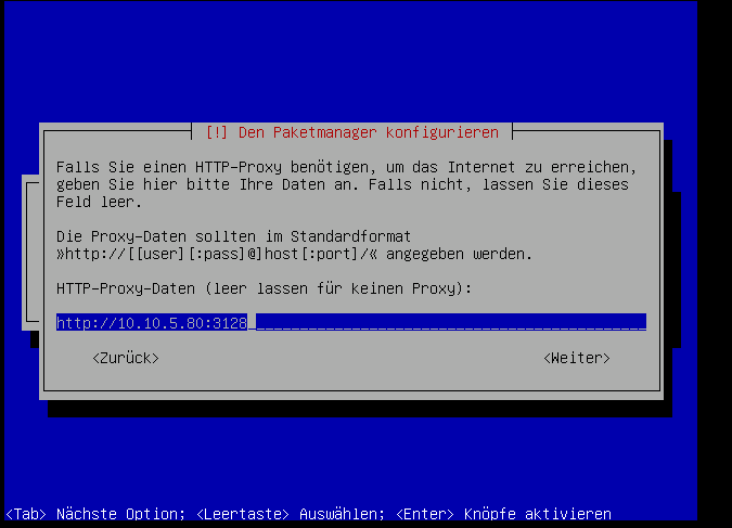 Wenn kein Gateway existiert (z.B. wenn wir über einen Proxy gehen), dann lassen wir dieses Feld einfach leer: