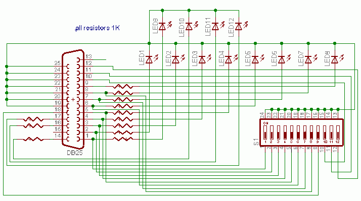 Hier gibt es eine sehr schöne Testschaltung um mit dem Parallelport rumzuspielen: